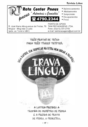 (próx. ao Túnel e UBC) e-mail: tanirecapagens@uol.com.br