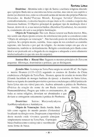 Objeto de Veneração: Não tem. Busca venerar seu Buda interior. Mas,