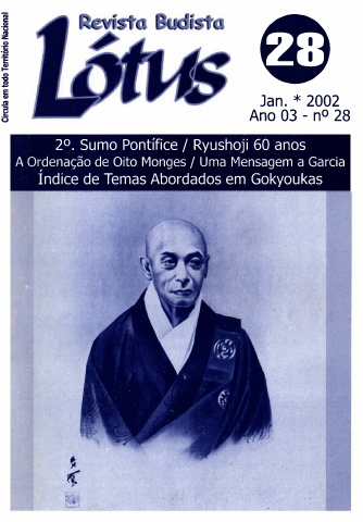 1 "' z e 1 o ... o .. J E .!! Jan. * 2002 E! ° u Ano 03 - n 28 2 . Sumo Pontífice / Ryushoji 60 anos º A Ordenação de Oito Monges / Uma Mensagem a Garcia Índice de Temas Abordados em Gokyoukas