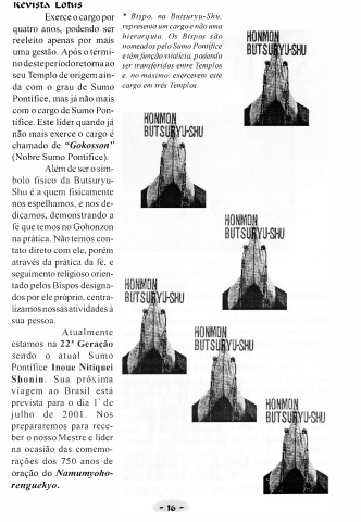 Exerce o cargo por • Bispo. na Butsuryu-Shu,