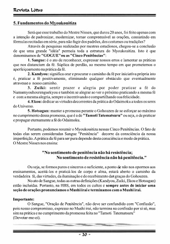 Portanto, podemos resumir o Myoukouitiza nessas Cinco Penitências. O fato de