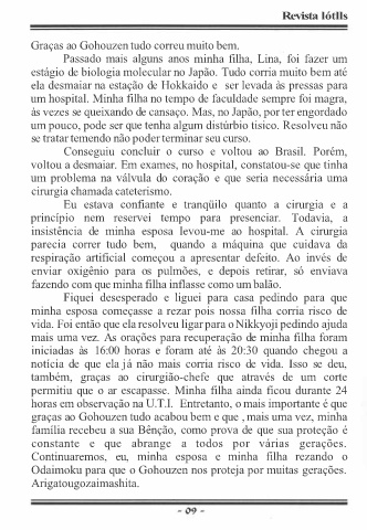 vida. Foi então que ela resolveu ligar para o Nikkyoji pedindo ajuda