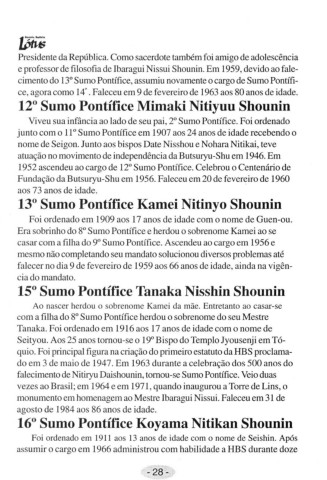 1952 ascondou ao cargo do 12° Sumo Pontico. Colobrou o Contonario do