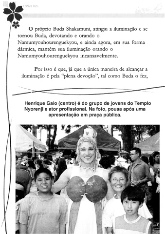 S se tornou o o N forma ilumina o incansavelmente. Por isso é já que a única maneira de alcançar a fez, Henrique Gaio (centro) é do grupo de jovens do Templo Nyorenji e ator profissional. Na foto, pousa após uma apresentação em praça pública.