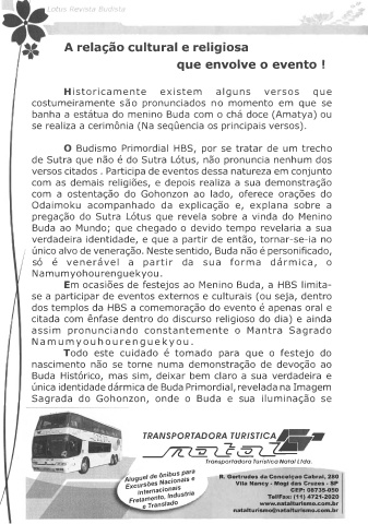 Em ocasiões de festejos ao Menino Buda, a HBS limita