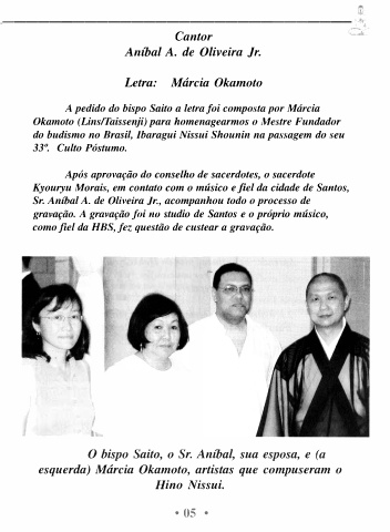 A pedido do bispo Saito a letra foi composta por Márcia