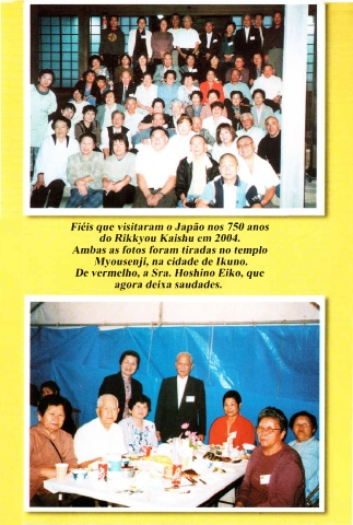 Fiéis que visitaram o Japão nos 750 anos do Rikkyou Kaishu em 2004. Ambas as fotos foram tiradas no templo Myousenji, na cidade de lkuno. De vermelho, a Sra. Hoshino Eiko, que agora deixa saudades.