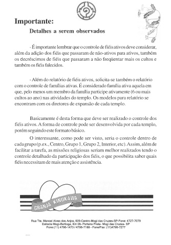 fiéis ativos. A forma de controle pode ser desenvolvida por cada templo,