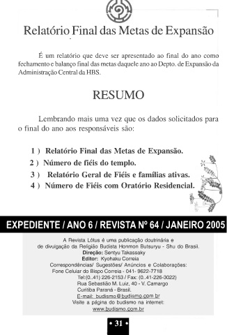 de divulgação da Religião Budista Honmon Butsuryu - Shu do Brasil.