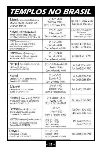 Nyorenji budismo@budismo.com,br 2 ° a 6 ° - 6h30 Tel: 0xx4 l 226-2153