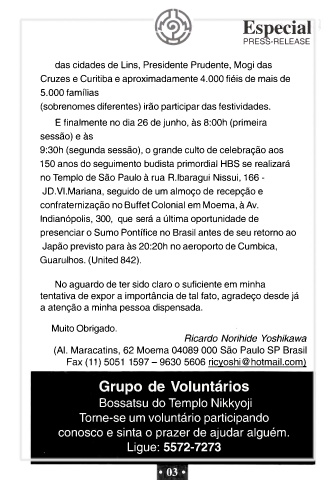 no Templo de São Paulo à rua R.lbaragui Nissui, 166 -