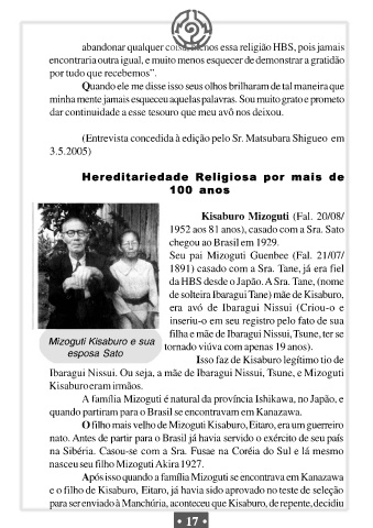 (Entrevista concedida à edição pelo Sr. Matsubara Shigueo em