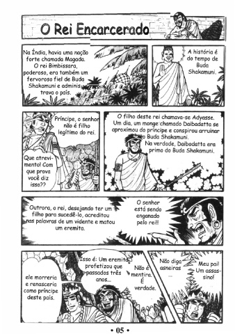 r·· - .- - ' ---- -, j O Rei Encarceraao�: � · - J;. ' 1 Na Índia, havia uma nação forte chamada Magada. O rei Bimbissara, poderoso, era também um fervoroso fiel de Buda Shakamuni e adminis • ;,-ltlinll�WJ1'71 trava o país. • 05 •