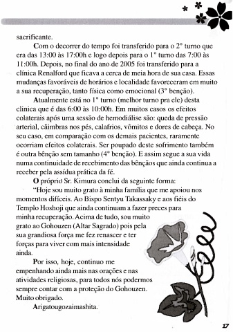 momentos difíceis. Ao Bispo Sentyu Takassaky e aos fiéis do