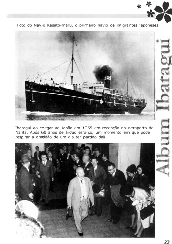 *t,I Foto do Navio Kasato-maru, o primeiro navio de imigrantes japoneses Ibaragui ao chegar ao Japão em 1965 em recepção no aeroporto de Narita. Após 60 anos de árduo esforço, um momento em que pôde respirar a gratidão de um dia ter partido dali. 23