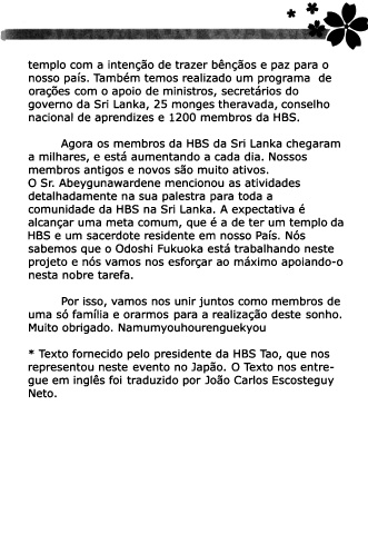 * Texto fornecido pelo presidente HBS que nos