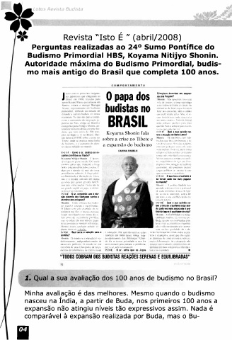 1: Qual a sua avaliação dos 100 anos de budismo no Brasil?