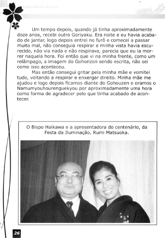 O Bispo Haikawa e a apresentadora do centenério, da