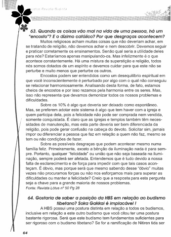 64. Gostaria de saber a posição da HBS em relação ao budismo