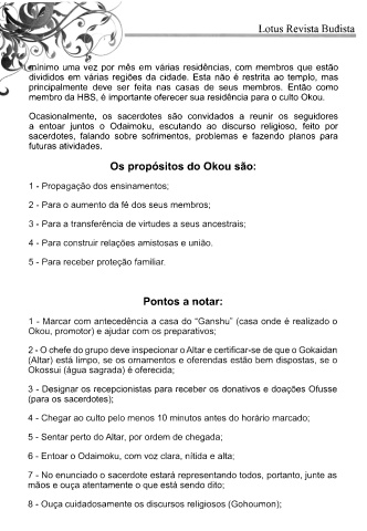 membro da HBS, é importante oferecer sua residência para o culto Okou.
