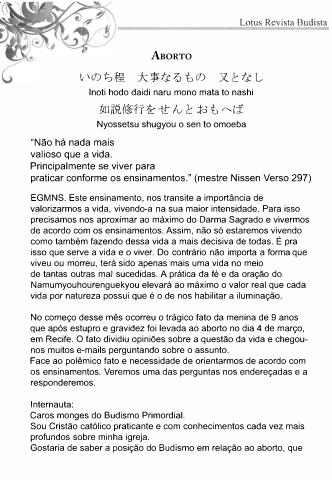 Gostaria de saber a posição do Budismo em relação ao aborto, que