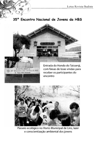 Lotus Revista Budista Entrada do Hondo do Taissenji, com faixas de boas vindas para receber os participantes do · encontro Passeio ecológico no Horto Municipal de Lins, lazer e conscientização ambiental dos jovens